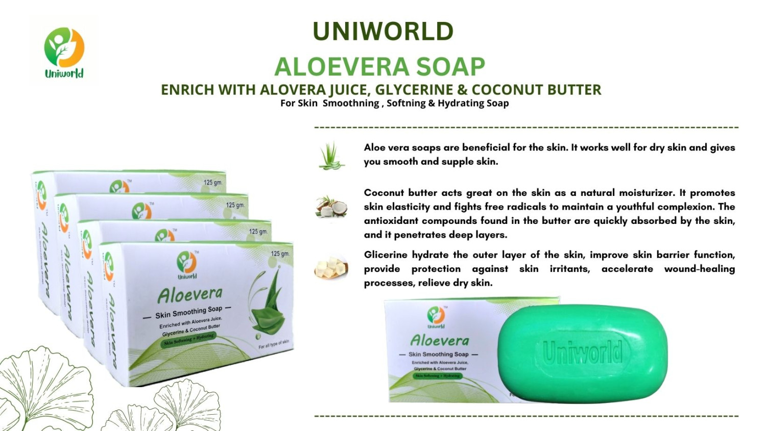 "Uniworld" Aloevera Skin Smoothing & Brightening Soap: