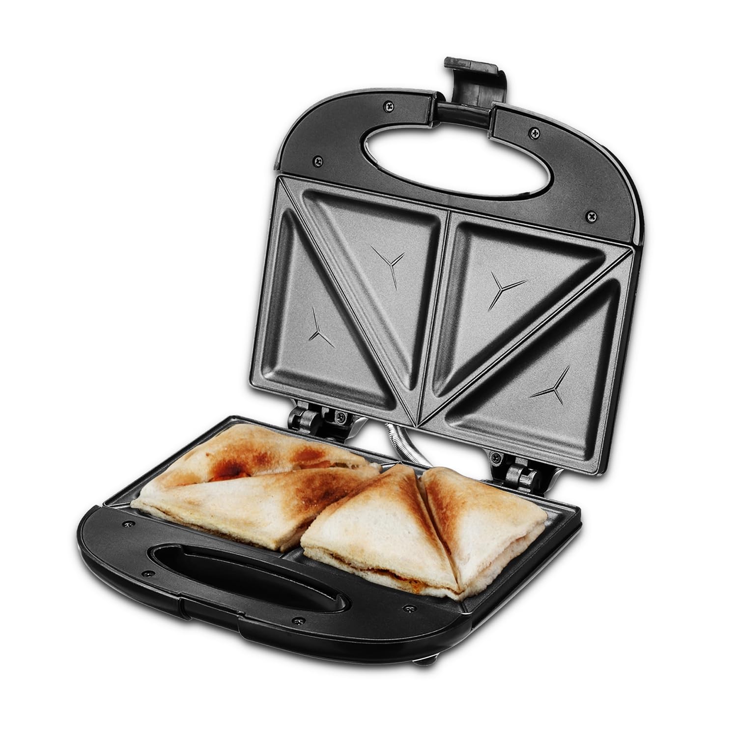 Amazon Basics 800W Electric Sandwich Maker & Toaster | Non-Stick Die Cast Aluminium Plates | Auto Temp Control | Grills Sandwiches, Bread & Kebabs (Black)