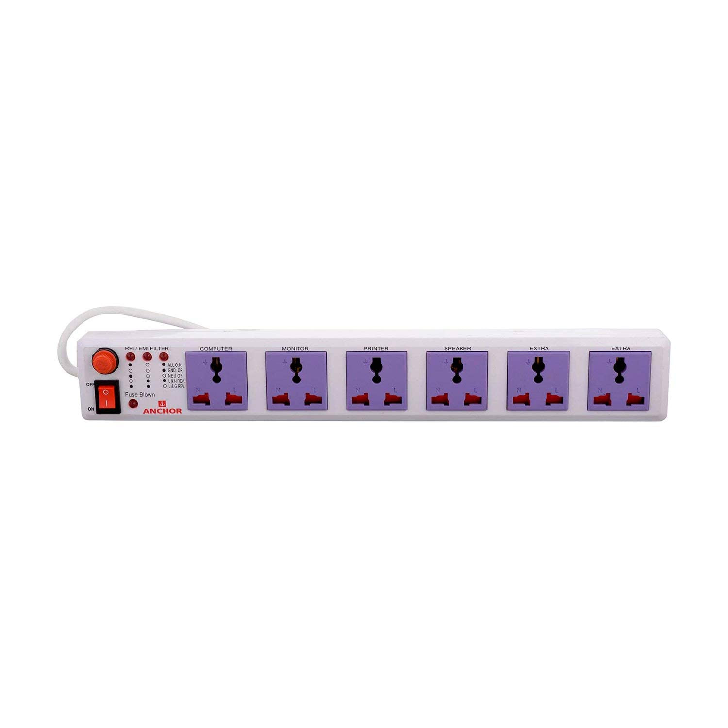 Anchor by Panasonic 6 way Universal Socket with Single Switch | 6 Way Extension Board with 1.5 Mtr Extension Cord | Multi Plug Socket for Home Wall, Office (22579)