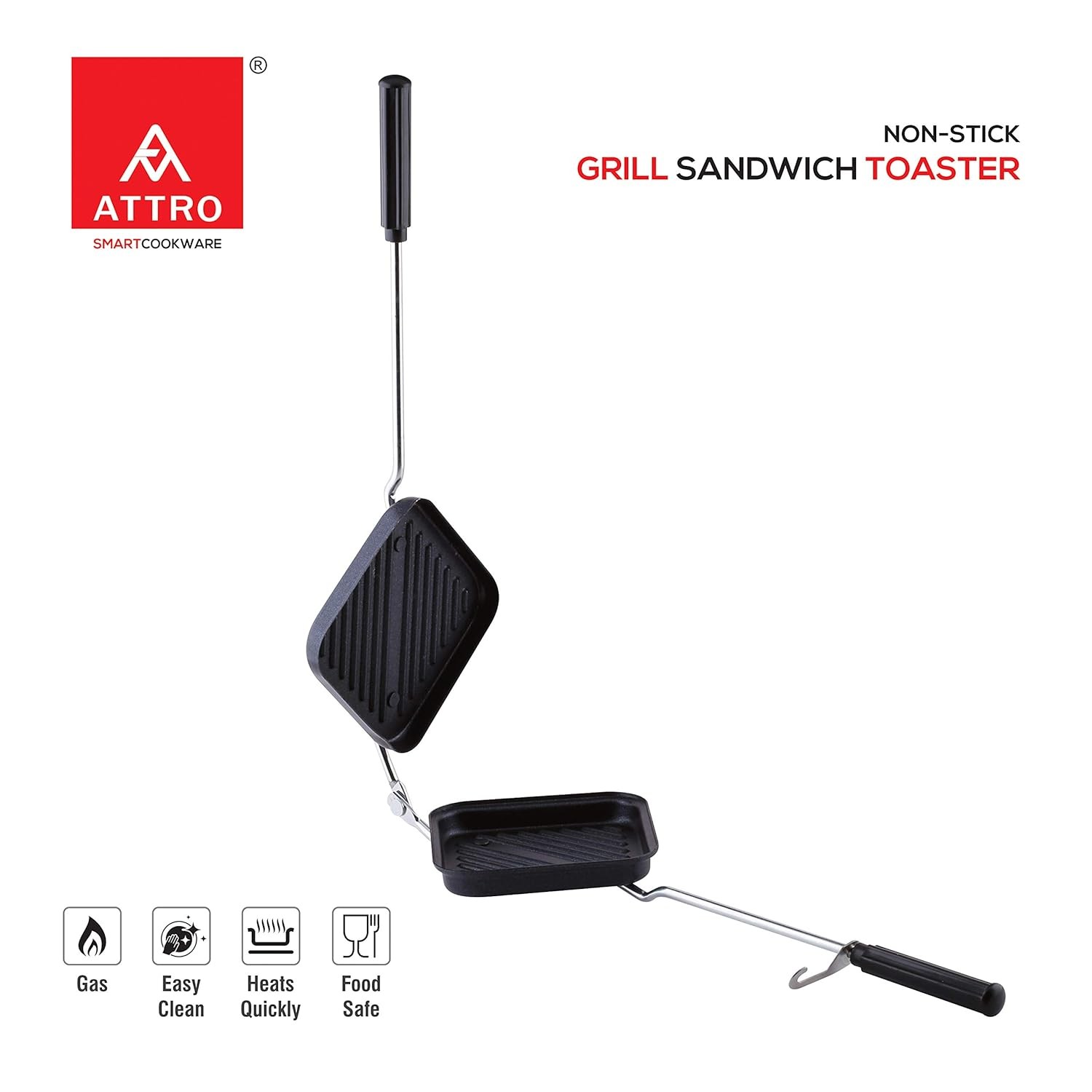 Attro Nonstick Grill Sandwich Toaster,Black - 1000 Watts, 300 Mm