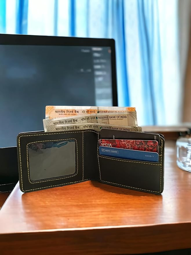 Shopforu Customized Leather Men's Gift Combo Set | Wallet-Keychain-Passport-Cover & Sunglass-Holder-Cover (Combo 4 Set) | Personalized Valentine's Day Gift for Boyfriend and Husband (Blue)