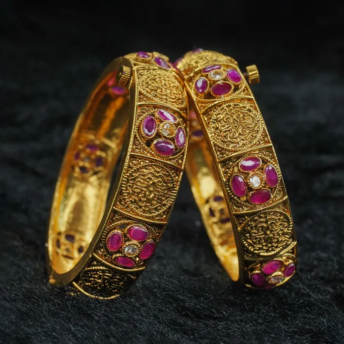 Beautiful gold polish copper bangles Ruby studded