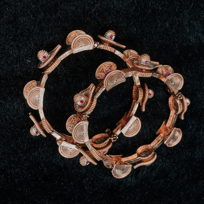 Beautiful shivling design gold plated copper bangles set