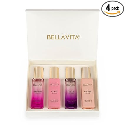 Bella Vita Luxury Woman Eau De Parfum Gift Set 4x20 ml for Women with Date, Senorita, Glam, Rose Perfume|Floral, Fruity Long Lasting EDP Fragrance Scent