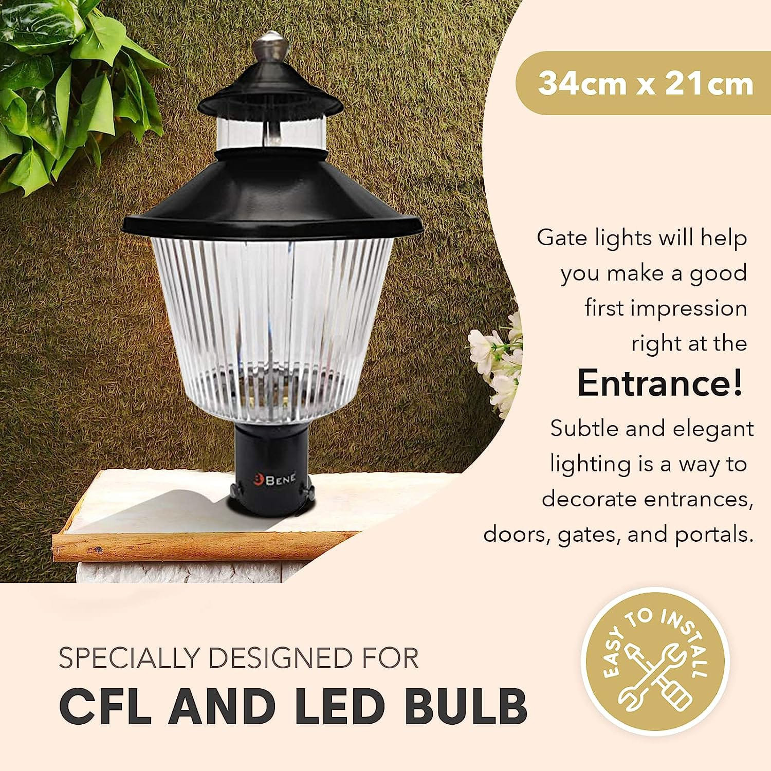 It Can Use On Both Side Of Gate Decoration As Gate Light For Lighting, Garden Light, Outdoor Light, Pool Side Lighting Decoration, Lobby Light, Porch Lighting, Pole Light, Street Light, Spot Light, New Home Decoration