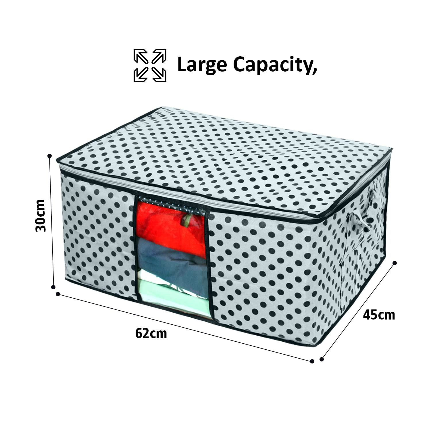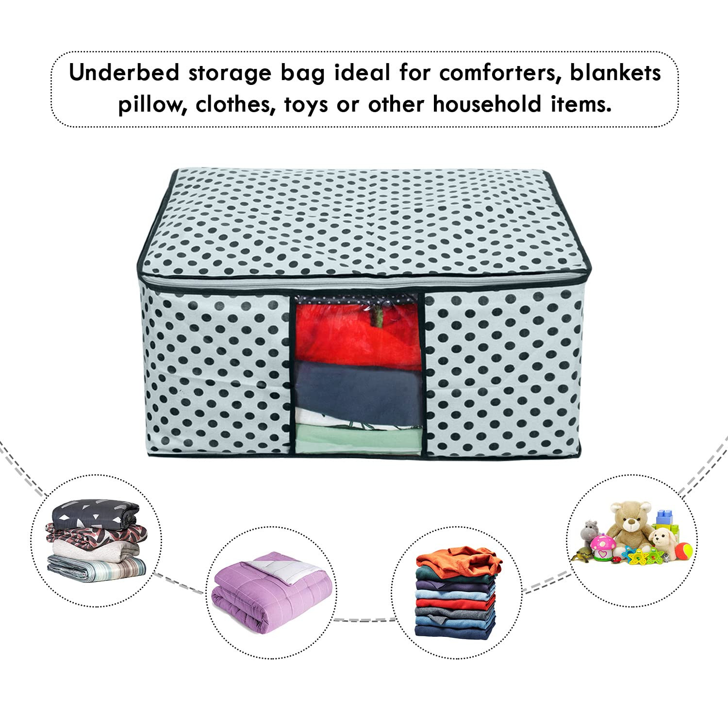 BEST Underbed Dotted Blanket Storage Organizer Bag with Side Handles - 98x40x19 cm, Set of 3 Pieces