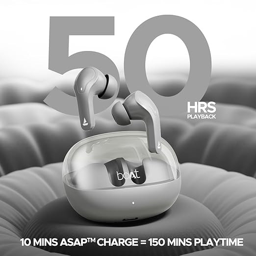 Up to 50 hours of Playback: Stay entertained non-stop with up to 50 hours of massive playtime. Pop in boAt Airdopes 311 Pro TWS Earbuds and make commutes fun with your favorite tunes for company.