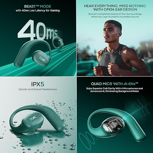 Air Conduction Technology: Embrace enhanced listening comfort with the boAt Airdopes ProGear OWS Earbuds. Boasting Air Conduction technology for audio transmission, these earbuds ensure minimal audio leakage while their open-ear design lets you enjoy music without blocking the ears.