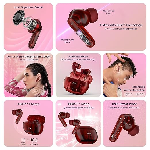 32 dB Active Noise Cancellation: Get ready to experience a new level of tranquility with the boAt Airdopes 191 ANC TWS Earbuds. Listen comfortably while tuning into podcasts and new music, as these earbuds eliminate 32 dB of background sounds.