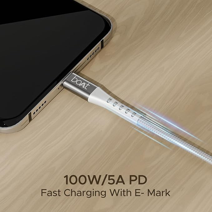 boAt Type-C C600 Tangle-Free, Sturdy Cable w/ 100W/5A Fast Charging & 10Gbps Data Transmission, 10000+ Bends Lifespan and Extended 1.5m Length,Compatible w/Xiaomi, Oneplus, Samsung, Vivo & Oppo(White)