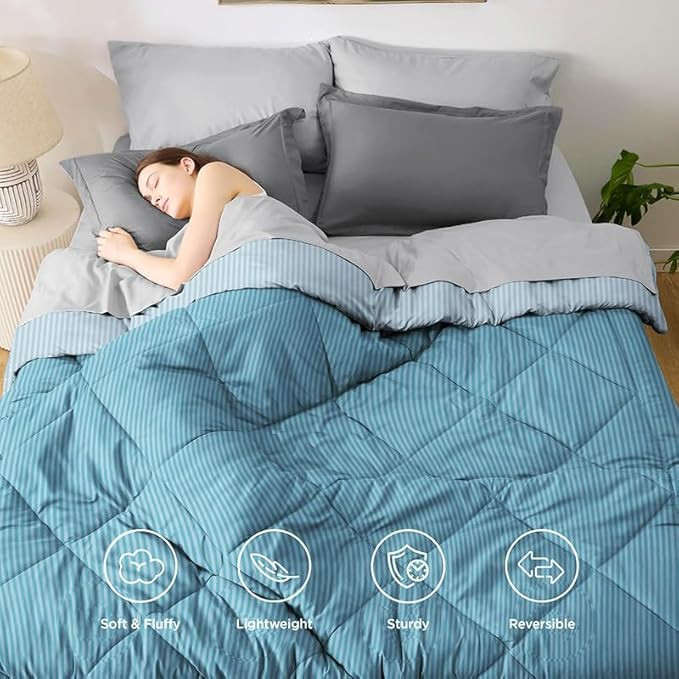 BSB HOME 220 GSM Microfiber Solid Satin Striped Comforter |Quit | Blanket Reversible Double Tone for Double Bed | Washable | Hypoallergenic Skin Friendly (90 x 100 Inch, Light Blue)