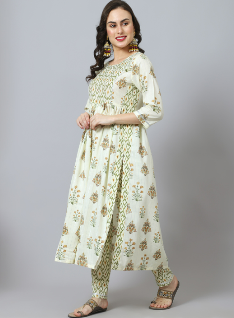The stunning kurta is embellished beautifully with mirrors and hand embroidery around the neck in a geometrical layout. The V-neckline and the two pockets deserve a special mention. This design is easy to style as workwear or to be worn at social gatherings. Coupled with a pair of palazzos, this long kurta for every mood is just splendid! Accessorize accordingly but don’t forget, your smile is the best feature!