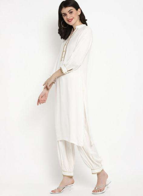 White Yoke Design Kurta with Dhoti Pants & Dupatta -