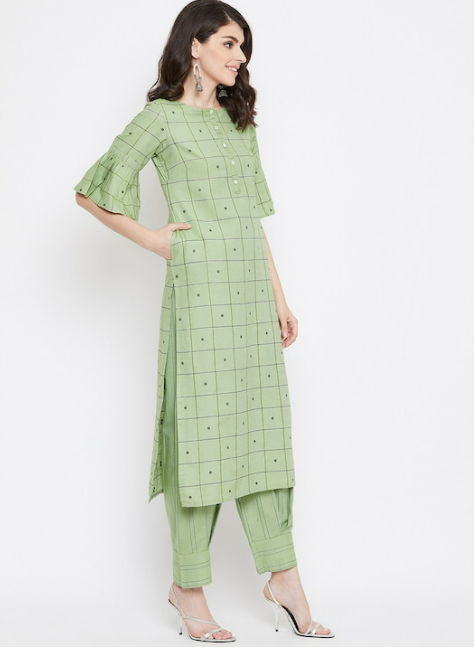 Women Green Printed Kurta with Trousers