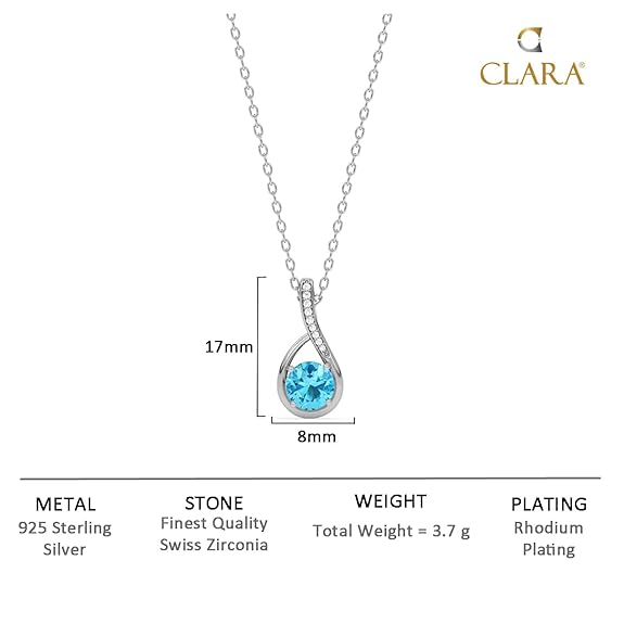 Clara 925 Sterling Silver Isla Pendant Earring Chain Jewellery Set | Rhodium Plated, Swiss Zirconia | Gift for Women & Girls
