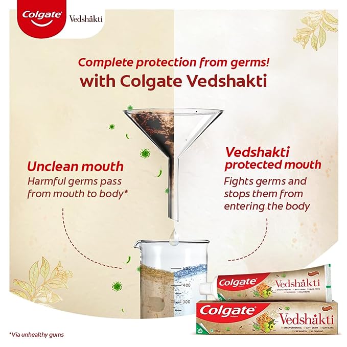 • Colgate Vedshakti fights germs in the mouth itself and stop germs from entering the body.