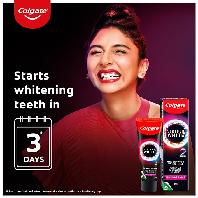 NOTICEABLY WHITER TEETH in 3 DAYS: Colgate Visible White O2’s Active Oxygen technology starts whitening your teeth in 3 days and offers you noticeably whiter teeth than ever before when used as directed on the pack.