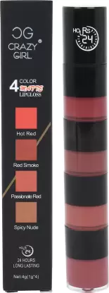 Crazy girl 24 HOURS STAY 4 IN 1 LIPGLOSS 4 SHADES IN 1 PC GLOSS NEW (4 g, HOT RED, RED SMOKE, PASSIONATE RED, SPICY NUDE)