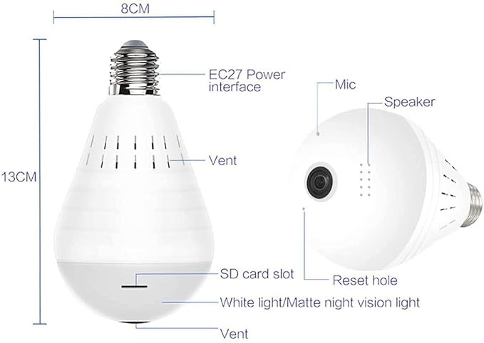 DDLC Bulb Camera 1080P WiFi Security Camera, Full HD Video and Audio Recording, 360v Degrees Panoramic Camera for Home, Office Surveillance, Motion Detection/Light Vision/Alarm and Support 64Gb