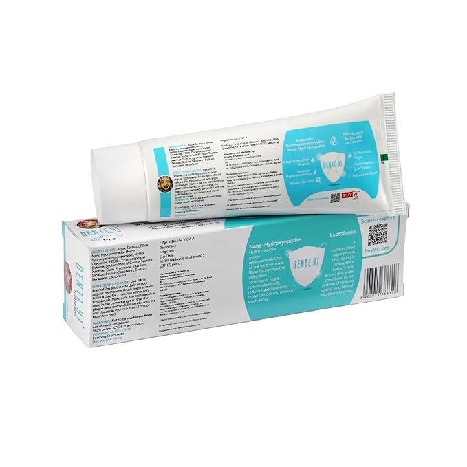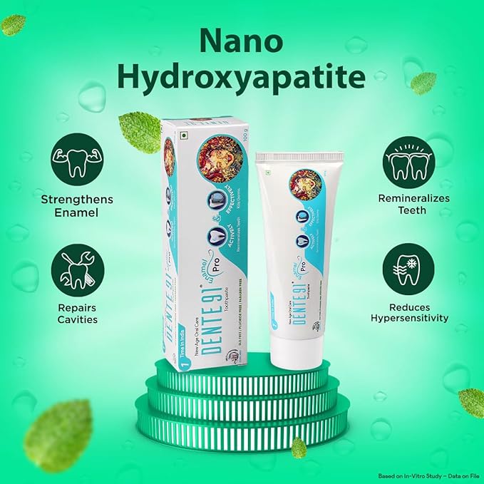 SENSITIVITY RELIEF: Nano Hydroxyapatite in Dente91 Toothpaste forms a protective layer over the teeth that gives protection against hypersensitivity & remineralizes teeth.
