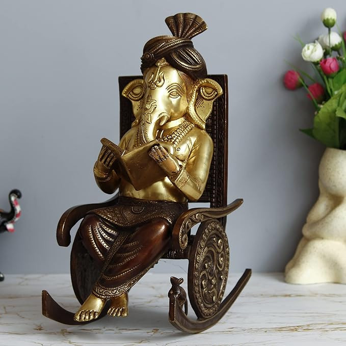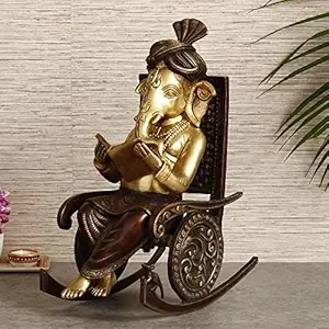 Package Content : One Lord Ganesha Reading Book and Sitting on Rocking Chair Antique Look Handcrafted Premium Brass Figurine