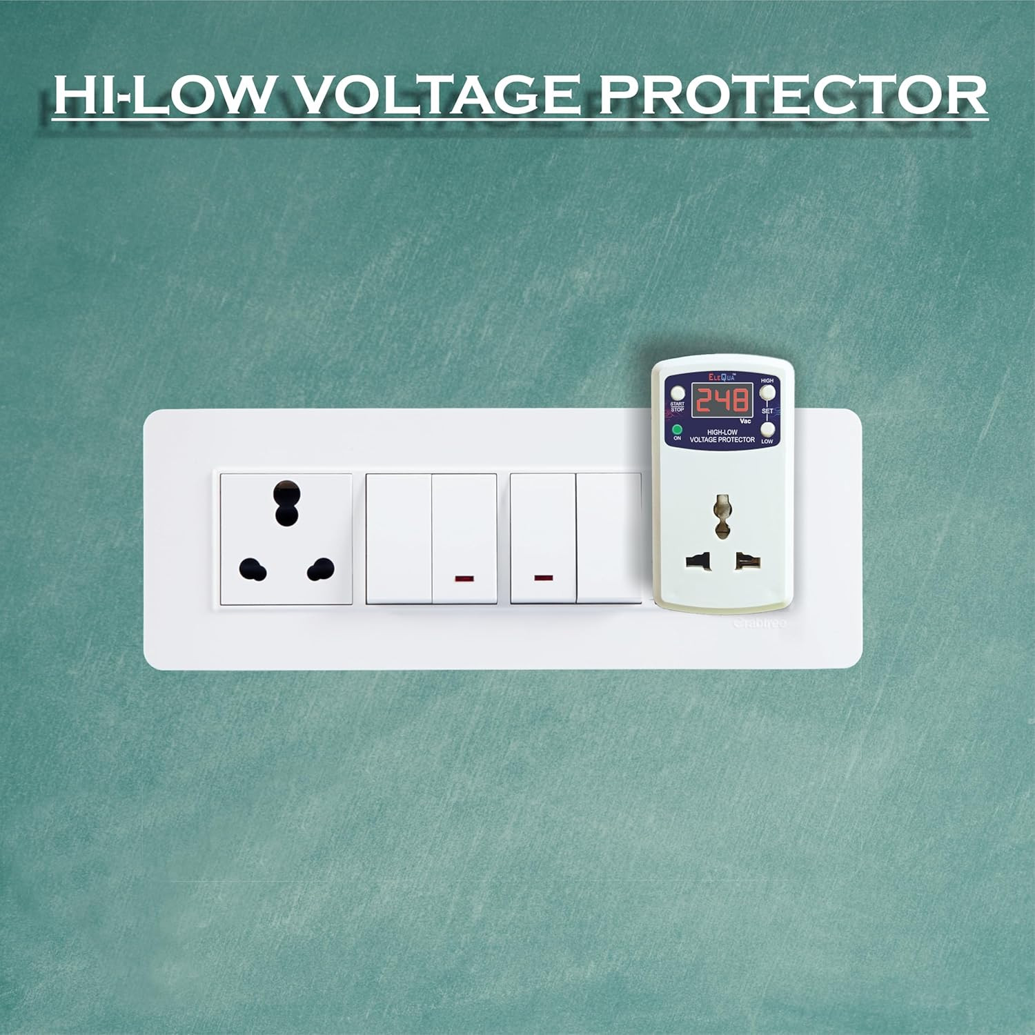 ELEQUA Digital High, Low Voltage Cutoff/Protector/Safty (Adjustable setting) Plug Socket 6AMP With Surge Protection Upto 4000 Volts,Made in India, corded_electric, White