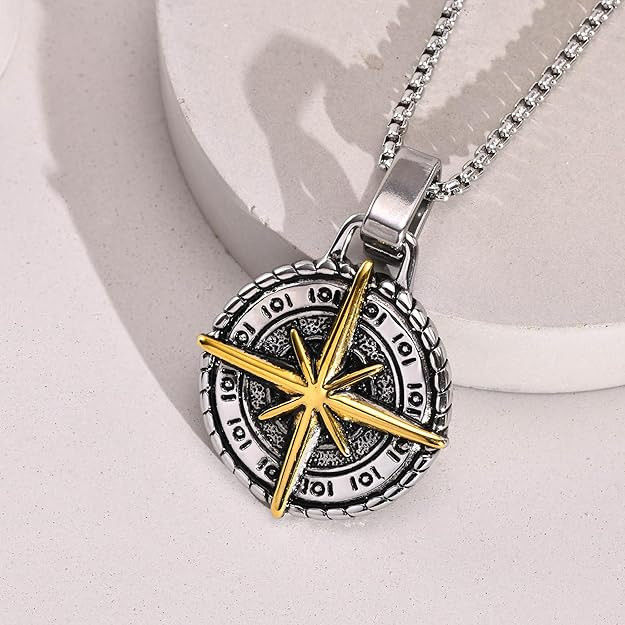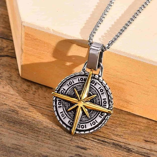 VALUE NECKLACE CHAIN SET-- There 1Pcs Pendant Necklace In One Order, Silver Compass Chain Pendant with Shiny Steel Natura Silver Pendant Plating Cable Chain, Classic Colors Matching Design, Cool Necklace Jewelry for Mens And Women; Quality Lobster-claw Clasp That Easy To Wear.