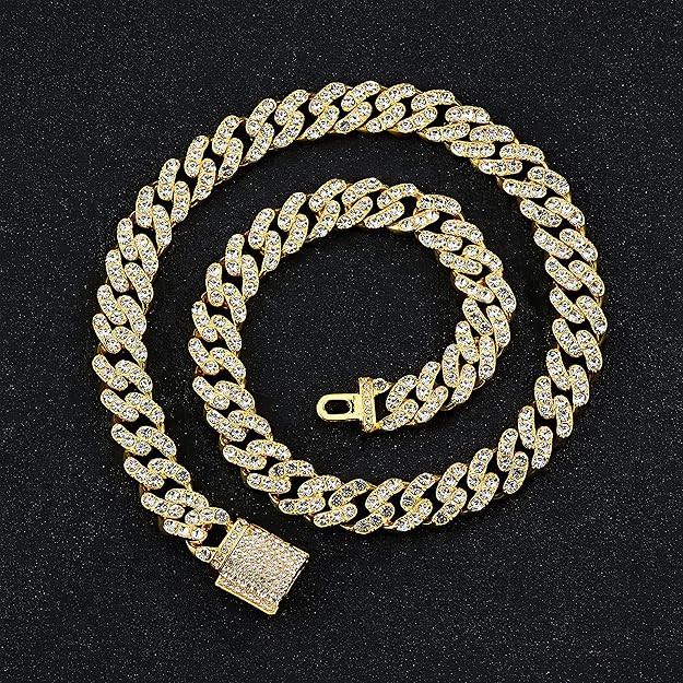 MATERIAL: High quality gold silver plated chain necklace with over 300 rhinestones,Hand-made process to ensure product can be precious and shine more cuban link necklace chain it's nickel-free, lead-free and harmless to health