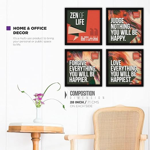 FATMUG People Themed Synthetic Motivational Framed Quotes for Walls and Home Decor, Multicolour, 13 x 13 inches, Set of 4