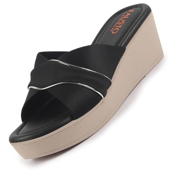 FAUSTO Women's Silver Lining Open Toe Cross Strap Wedge Slip On Sandal With Cushioned Footbed|Sandal For Party|Festive|Wedding