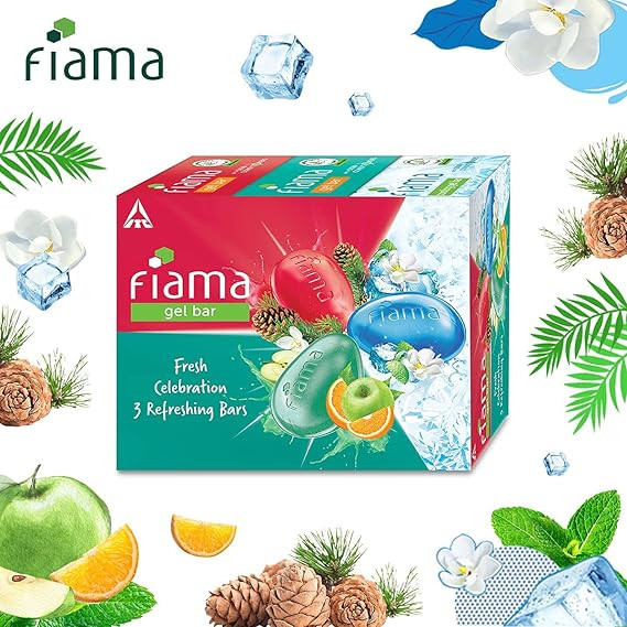 Fiama Gel Bathing Bar Fresh Celebration pack, with 3 unique gel bars, with skin conditioners for moisturized skin, 125g soap (Pack of 3)