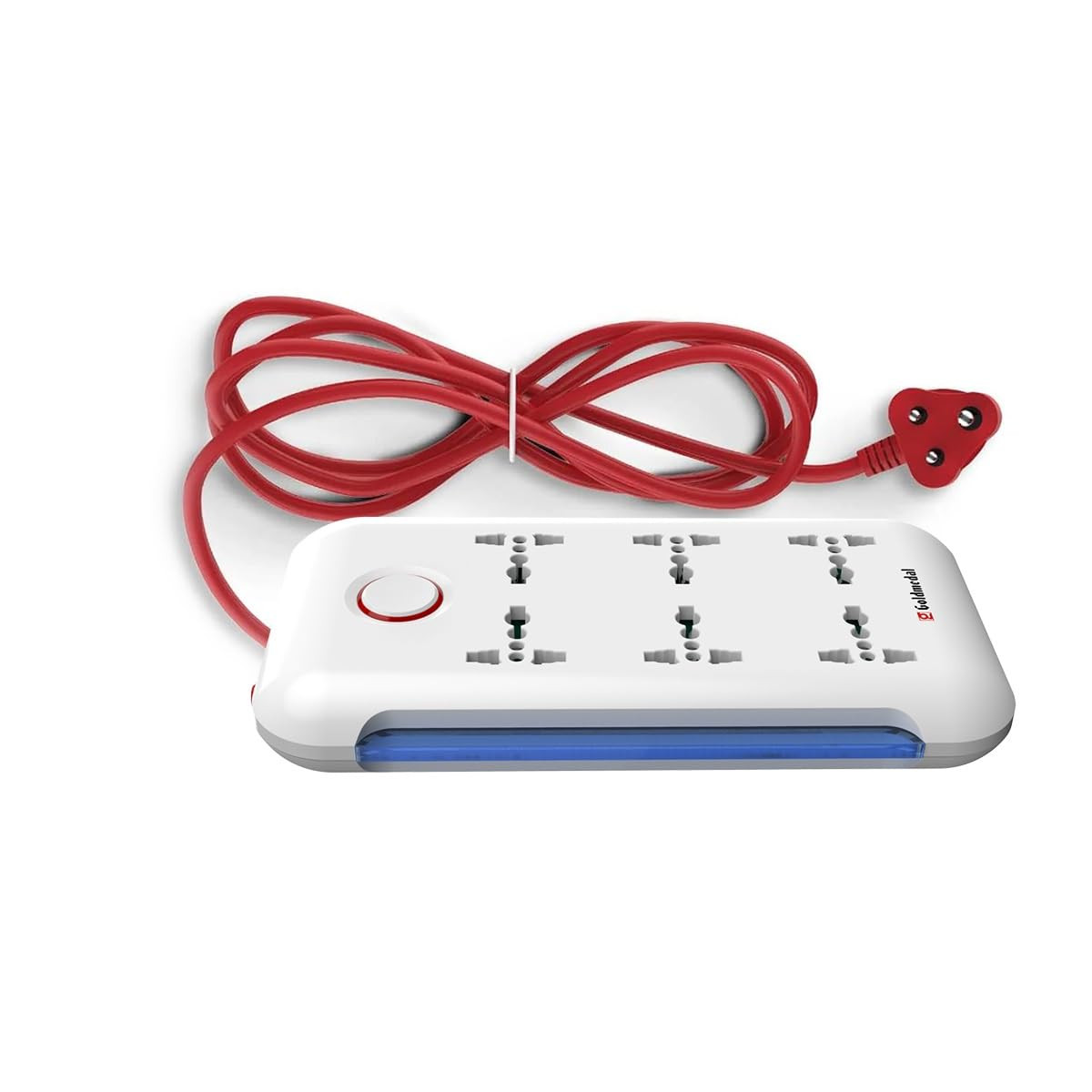 Goldmedal i-Strip LED High Grade Spike Guard (White and Red) – Pack of 1, 6 Outlet International Socket, master Switch, 3-pin 2 meter Cable, Indicator with Surge Protector for Home & Office