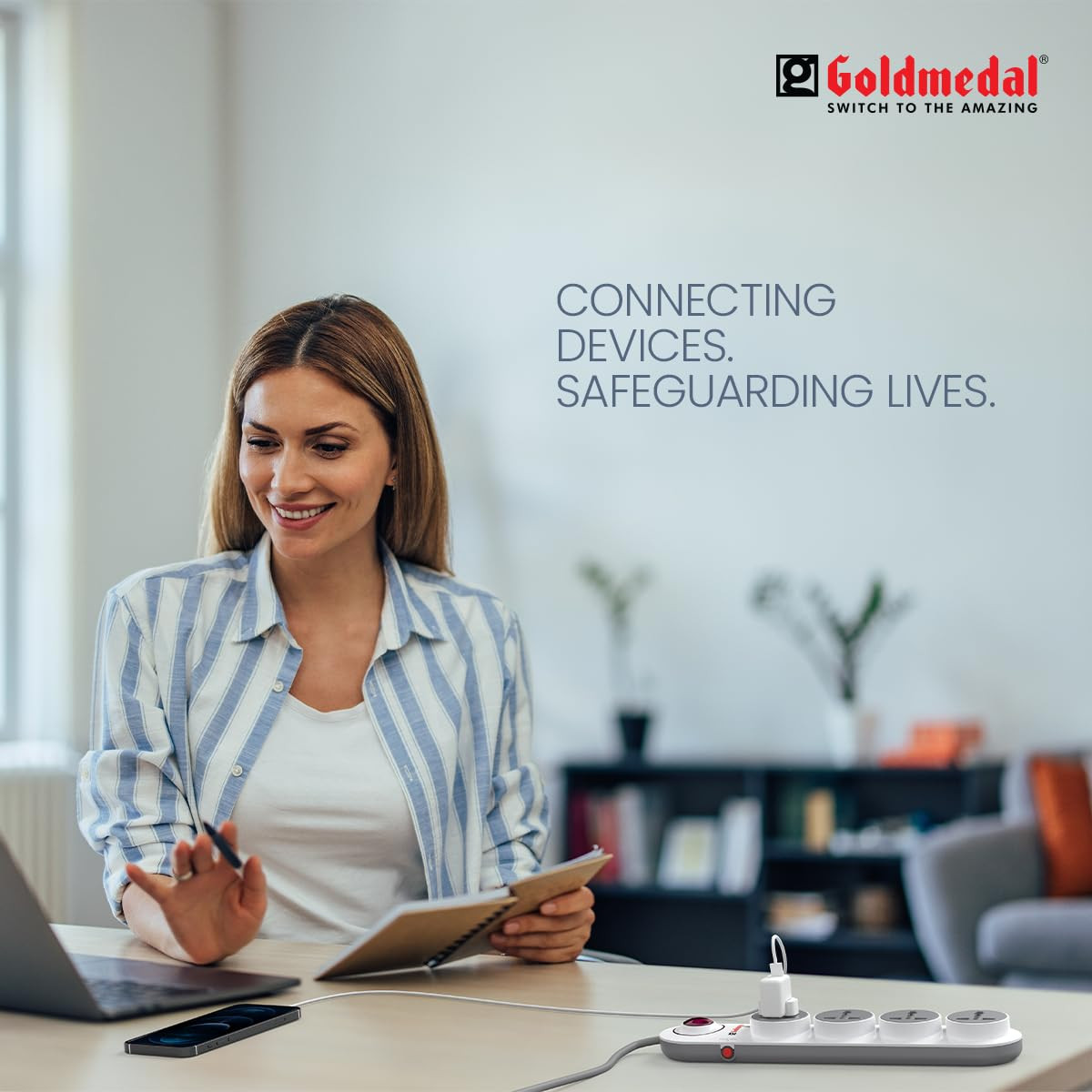 Goldmedal Logica 4X1 Spike Guard (White)–4 International Sockets,Suitable for All Type Plugs,2-Meter Cable,Master Switch with Indicator & Reset Switch with Surge Protector for Home&Office (Pack of 5)