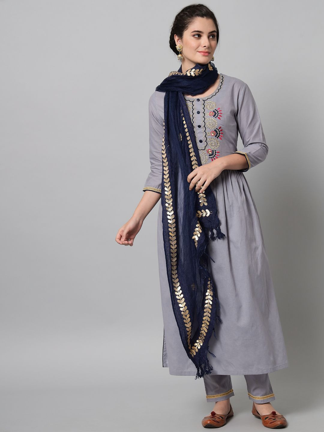 A graceful option for all occasions. This lovely kurta pant set is made from pure cotton fabric and is embellished beautifully embroidered on the front yoke. The kurta comes with a pair of pants featuring two spacious pockets, and elastic at the back. This design is easy to style as workwear or to be worn at social gatherings.