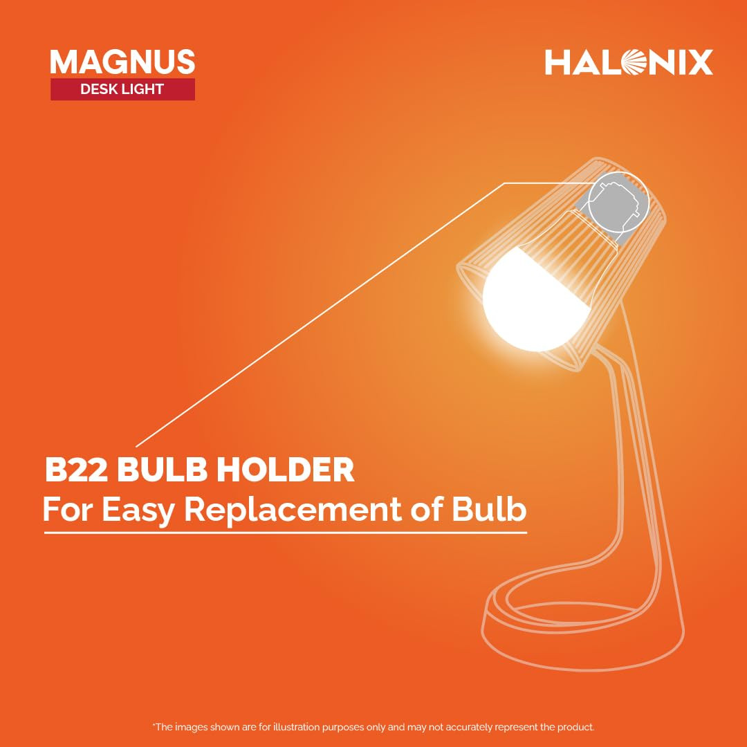 • Halonix Magnus Desk Light | With 4.9W Led Bulb | B22 holder | Light Weight | Easy to use Study lamp | Designer Study light |