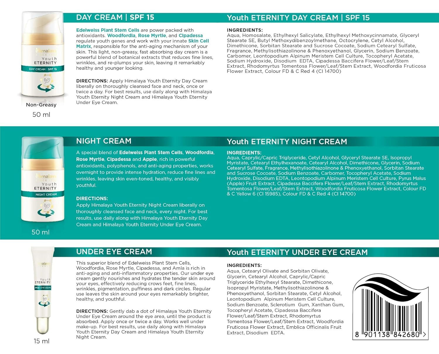 Unlock your skin's youthful potential with the Himalaya Youth Eternity Kit, a perfect fusion of nature and science designed to combat the signs of aging. This all-inclusive skincare set harnesses the power of natural ingredients to promote skin elasticity, enhance hydration, and provide a radiant glow. With a gentle yet effective formulation, this kit is suitable for all skin types and helps you achieve a refreshed, youthful complexion that emanates vitality. Transform your skincare routine into a rejuvenating ritual with the Himalaya Youth Eternity Kit, where every application is a step towards ageless beauty.
