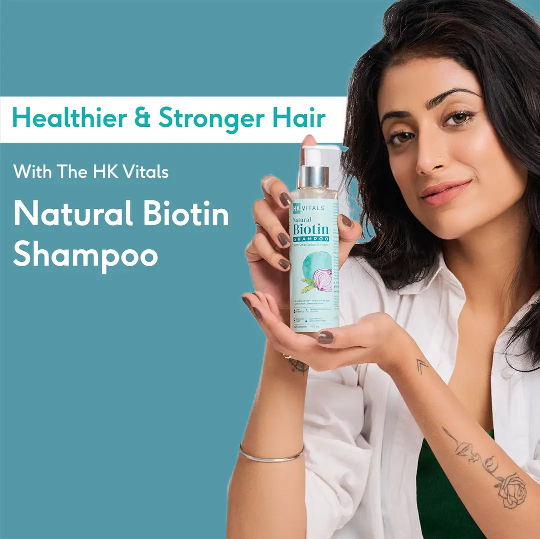 Elevate your hair care routine with hk vitals natural biotin Shampoo enriched with the powerful essence of Red Onion Extract. This expertly formulated shampoo is designed to revitalize and nourish your hair, promoting stronger, thicker, and healthier locks. Infused with vitamins and minerals, this unique blend helps to stimulate hair growth while reducing breakage and enhancing shine. Each wash leaves your hair feeling refreshed, vibrant, and resilient against everyday damage, making it the ideal choice for anyone seeking luscious and beautiful hair.