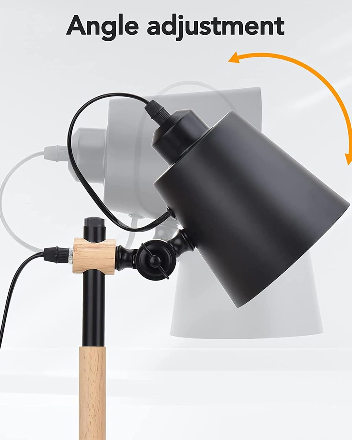 Homesake® Nordic Style Metal Desk Lamp,Modern Minimalist Adjustable Reading Lamp with Solid Natural Wood, (Desk Lamp Black)