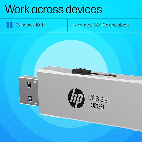 HP 818w 32GB USB 3.2 Flash Drive Silver Metal