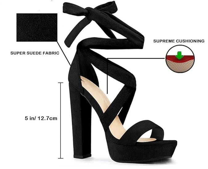 K KOMMY FASHIONS Strappy Heels for Women Chunky Heels High Heeled Sandals with Lace Up Fahsion Casual Block Heel Sandals