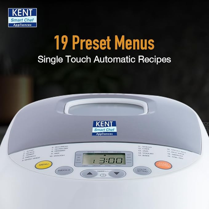 Kent Atta and Bread Maker for Home, Fully Automatic With 19 Pre-set Menu, 550w 16010 (Steel Grey)