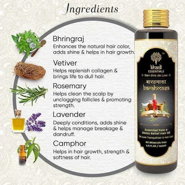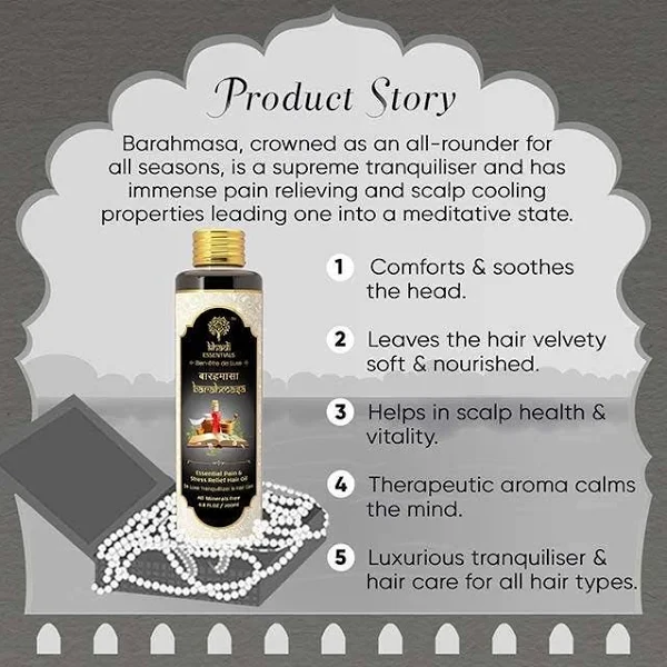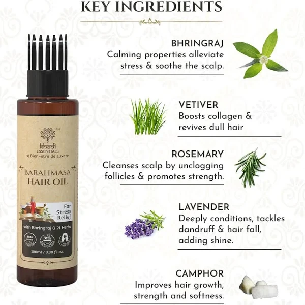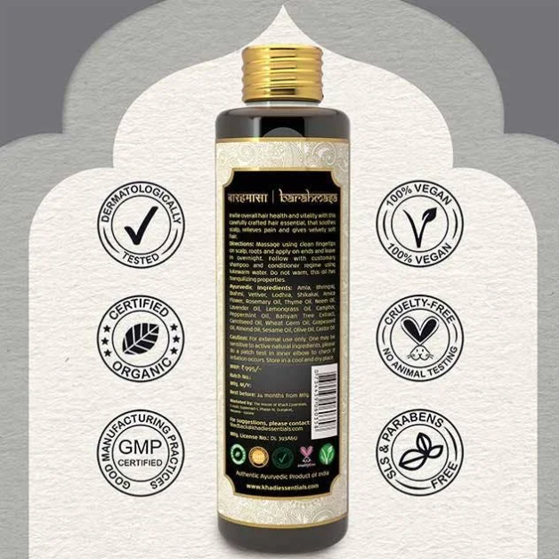 Introducing KHADI – BARAHMASA HAIR OIL, a magical blend designed to revitalize and nourish your hair throughout the seasons. Crafted with traditional Ayurvedic wisdom, this hair oil is enriched with a diverse mix of natural herbs that promote hair growth, strength, and shine. Whether you’re battling dryness, hair fall, or lacklustre locks, KHADI BARAHMASA will transform your hair care routine into a rejuvenating ritual. Embrace the power of nature for healthier, shinier hair that truly reflects your inner glow!