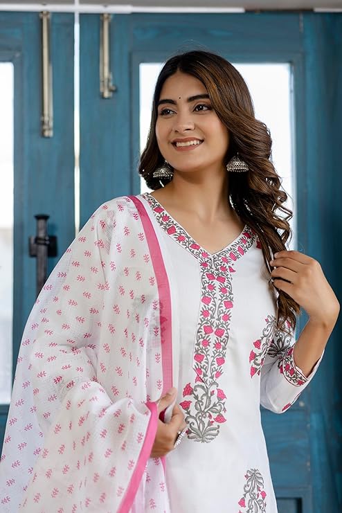 KLOSIA Women Block Printed Kurta pant set With Dupatta -