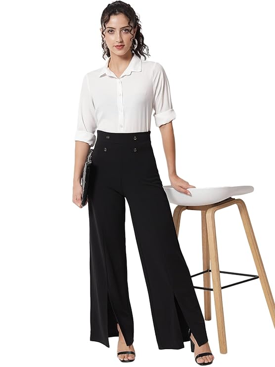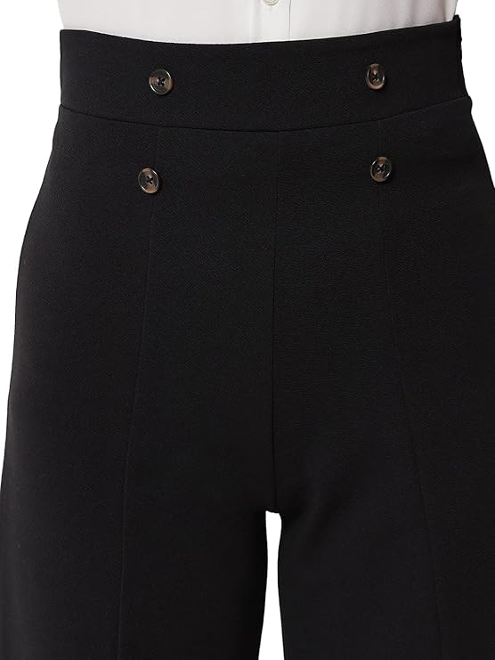 KOTTY Women Regular Length Jade Black Solid Trousers -