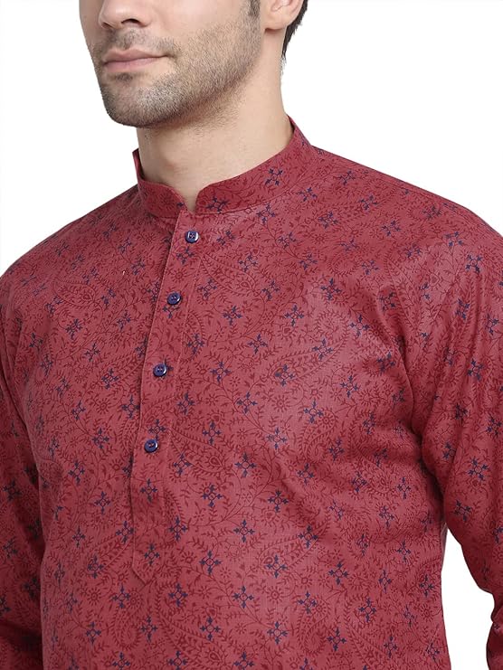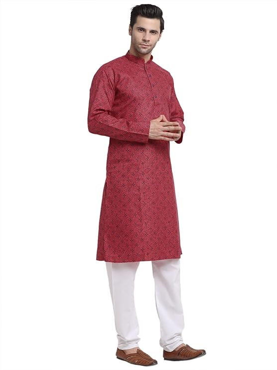 KRAFT INDIA is known for providing fashionable men's and boys' ethnicwear with the best quality .This straight knee length kurta Made up from Cotton Fabric With white Pajama has a mandarin collar, long sleeves, side pockets, button closure, side slits, straight hem.