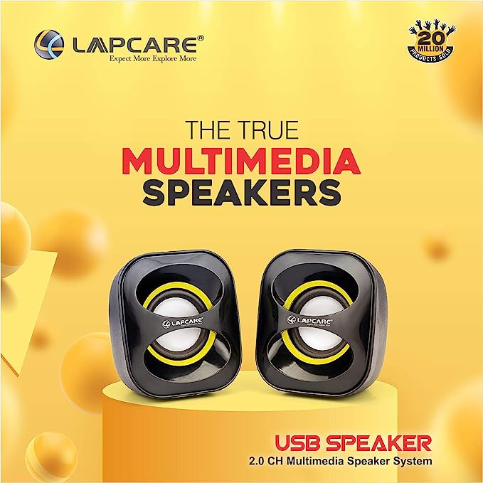 Lapcare LUS-040 3 Watt 2.0 Channel USB Multimedia Speaker (Yellow, Black)