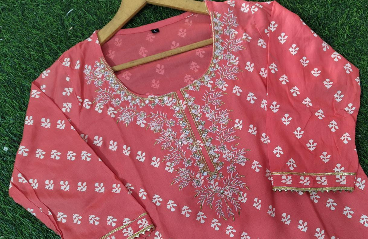 Premium quality suit WD heavy yoke and heavy sequins & EMB work details, EMB border dupatta 3 pc set dupatta fabric shiffon nd kurti pant fabric heavy quality rayon