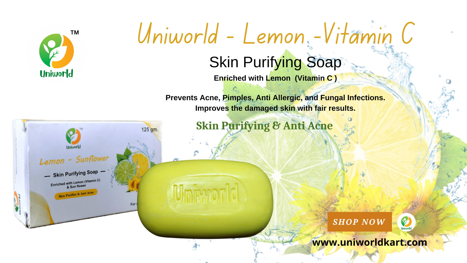 Elevate your skincare routine with Uniworld Lemon-Sunflower Soap and experience the purifying, preventive, and rejuvenating benefits it offers for your skin.