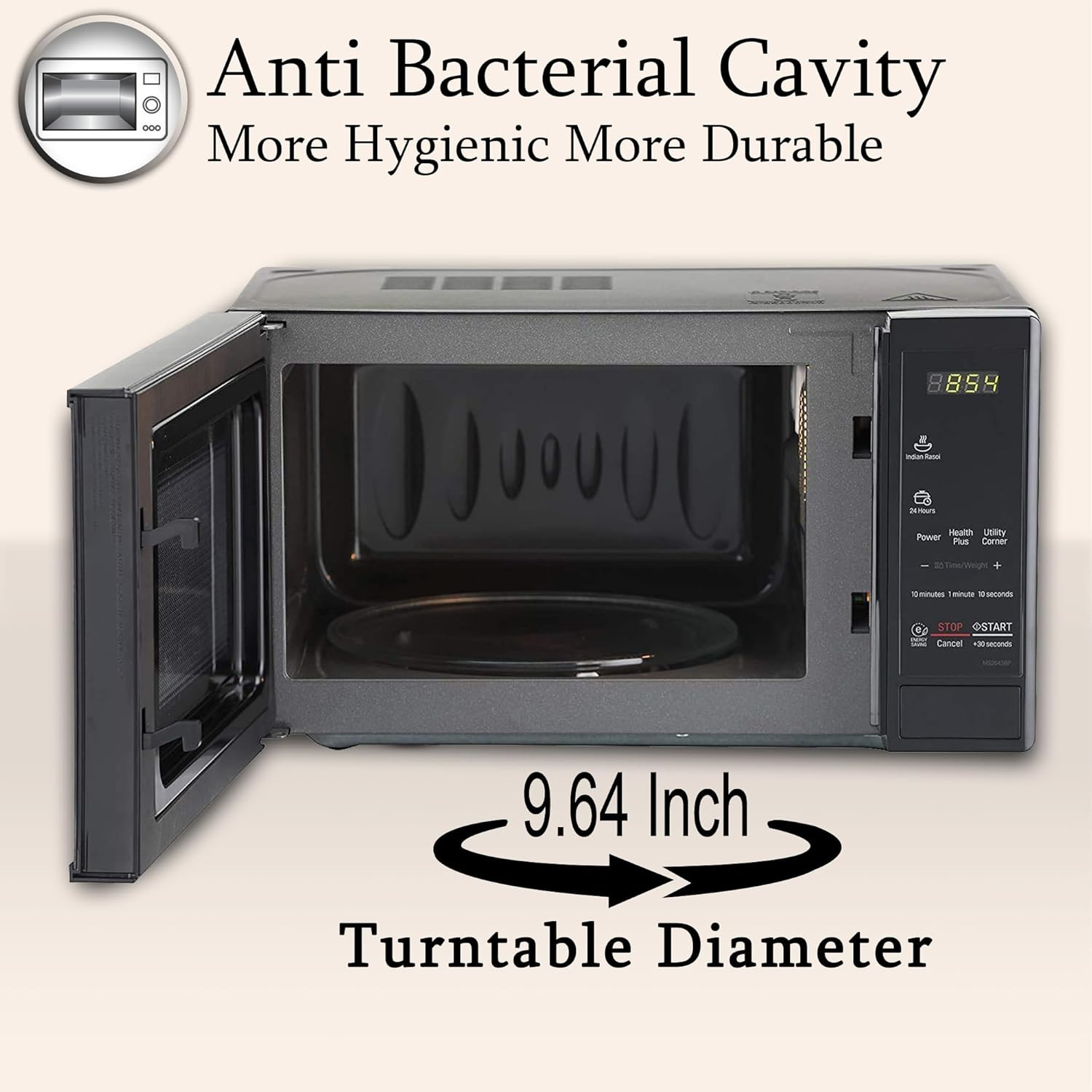 • Special Features: i-wave - This patented technology ensure faster and healthier cooking by circulating microwaves evenly inside the cavity | Anti Bacteria Cavity - reduces bacteria growth inside the cavity | Steam Clean - Steam Clean – Wiping the microwave cavity absolutely clean | Energy Saving