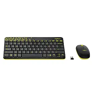 Logitech MK240 Nano Wireless USB Keyboard and Mouse Set, 12 Function Keys 2.4GHz Wireless, 1000DPI, Spill-Resistant Design, PC/Mac, Black/Chartreuse Yellow Brand: Logitech